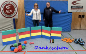 Strahlende Gesichter in der Sporthalle der Grundschule am Pfaffenberg: Im Rahmen der Grundschulsportinitiative „Kinderleichtathletik-Kooperationsschulen des HLV“ überreichte der Hessische Leichtathletik-Verband (HLV) ein umfangreiches Materialpaket, das künftig in den Kinderleichtathletik-AGs zum Einsatz kommt.