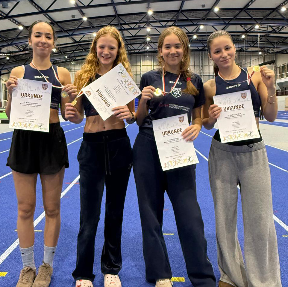 Den krönenden Abschluss bildete die 4×75 m-Staffel der weiblichen U14. In der Besetzung Franziska Gerlach, Linda von Reeken, Ylvie Kanivé und Elisa Wilson lief das Quartett in 40,96 Sekunden souverän zum Sieg und steht damit auf Platz 5 des hess. Bestenliste.